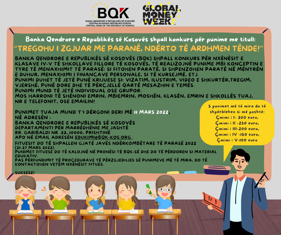 Me këtë rast shefi i kabinetit të Guvernatorit, Nexhat Miftari tha se qëllimi i aktiviteteve të edukimit financiar të BQK-së është të inkurajojë fëmijët dhe të rinjtë që të informohen dhe të mësojnë sa më shumë për produktet, konceptet dhe shërbimet financiare dhe të aplikojnë praktika të mira financiare në jetën e tyre të përditshme. Sa më të informuar dhe të edukuar financiarisht të jenë qytetarët tanë, aq më të aftë do të jenë në rritjen e mirëqenies së tyre ekonomike dhe financiare, në përzgjedhjen e duhur të produkteve financiare dhe në marrjen e vendimeve të shëndosha për financat e tyre personale.